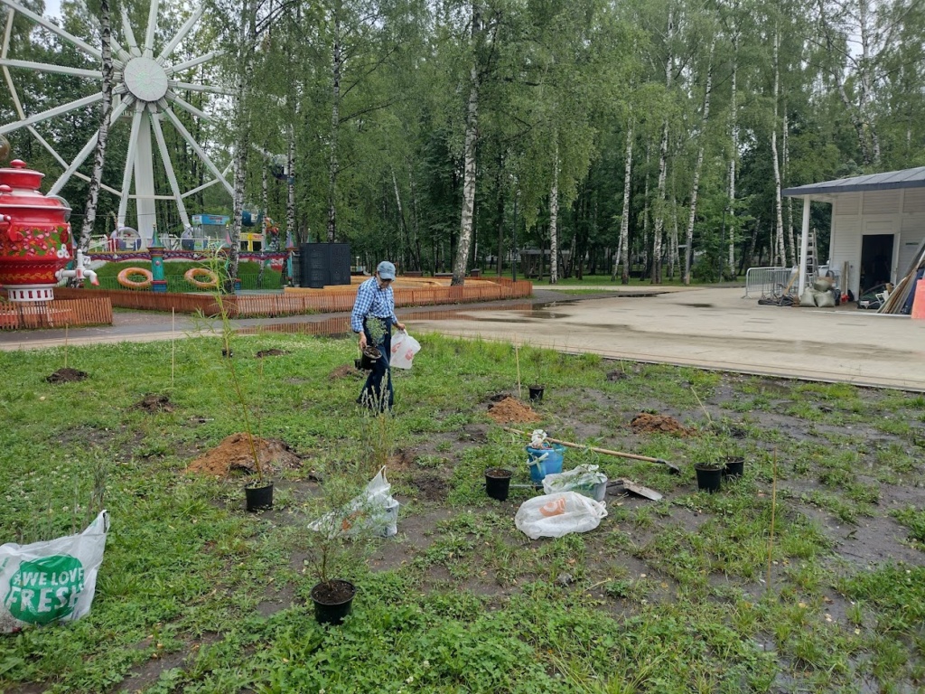 Нина Георгиевна Халина занимается озеленением территории Центрального парка в Пушкино. Она высадила хвойные растения, сосны и ивы. По собственной инициативе Нина Георгиевна делает парки Пушкино более зелёными и красивыми.