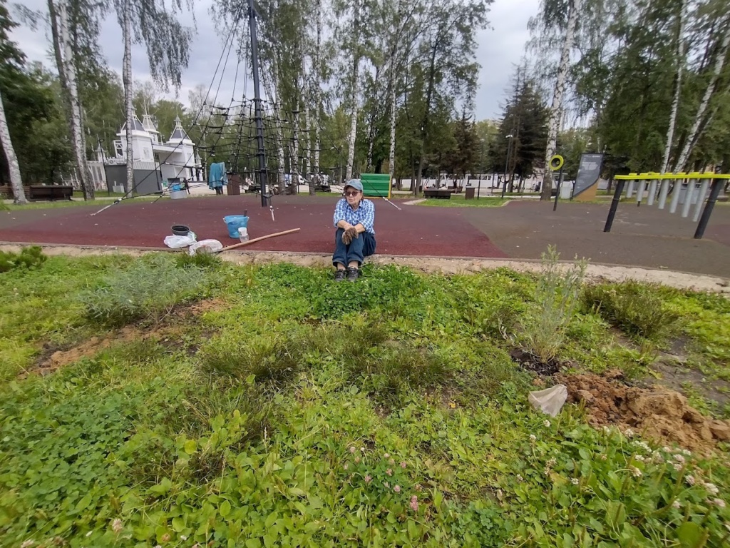 Также Нина Георгиевна взяла шефство над яблоневой аллеей, посаженной в память о героях войны 1941–1945 годов. Она подстригает и высаживает газонную траву, перекапывает грунт, убирает стекло и камни. Обрезает и ухаживает за ветвями яблонь, чтобы деревья не поражали болезни и паразиты. Кроме того, Нина Георгиевна покрасила элементы паркового забора золотой краской.